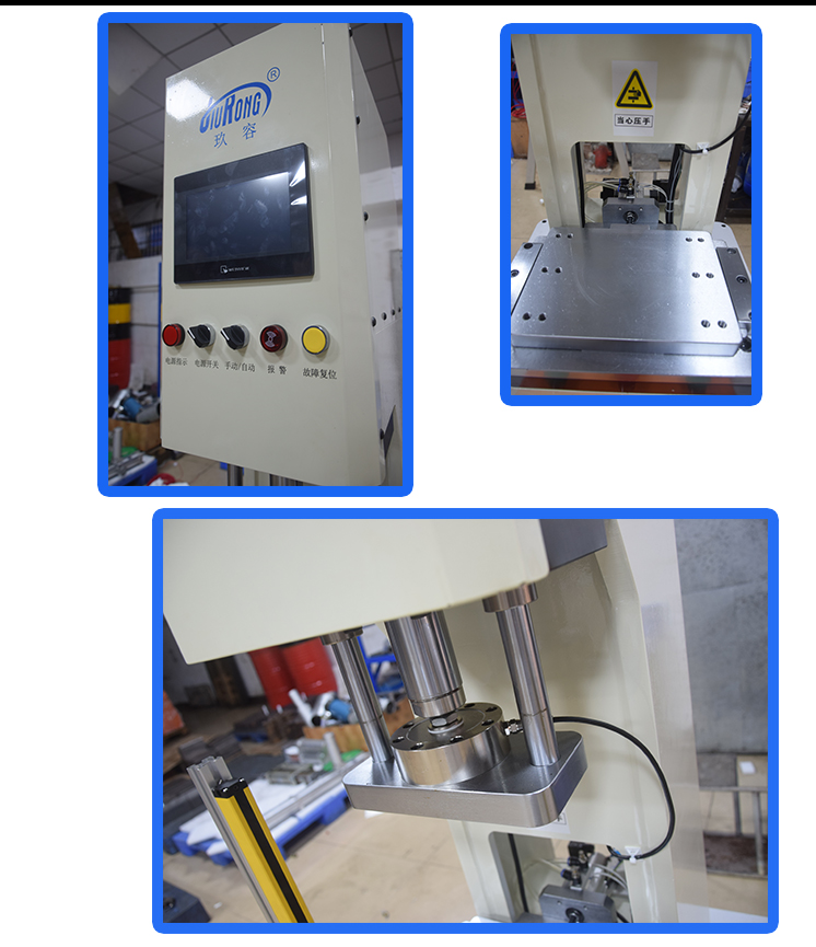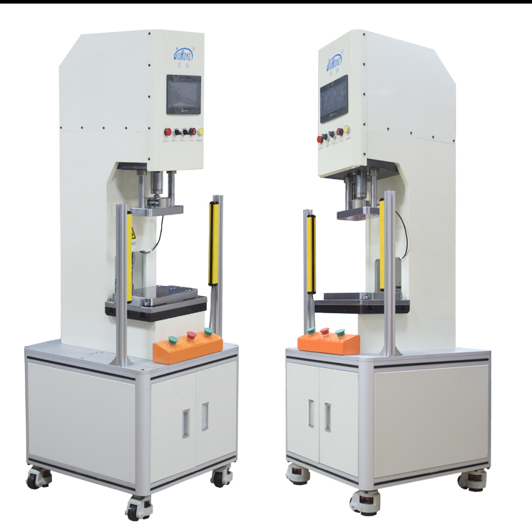 1T半弓型伺服壓力機是玖容【電動缸伺服壓力機】系列的一款產品,由伺服電動缸驅動,通過高精度滾珠絲桿輸出作用力,實施壓力裝配和壓力位移檢測功能的一款高精度智能壓裝設備。操作由專業開發的控制軟件保證全過程準確控制壓裝力、停止位置、壓裝速度和保壓時間等參數,達到全過程數控管理。伺服電動缸可以選配1T,3T,5T,10T。
